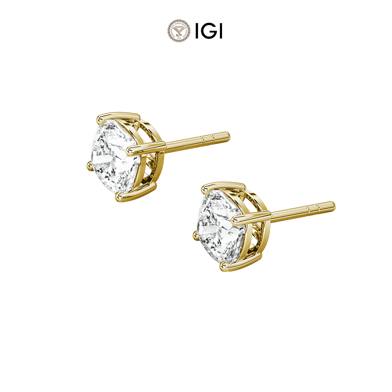 Elevate your elegance with these stunning Square Cushion-shaped IGI Certified lab-grown diamond stud earrings. Crafted in 18K gold, these earrings feature a total diamond weight of 2 carats, offering a sustainable and radiant sparkle. The Square Cushion diamonds are carefully set to enhance their brilliance, creating a sophisticated and timeless look. With secure push backings, these earrings provide a comfortable and effortless wear, perfect for both everyday chic and special occasions.