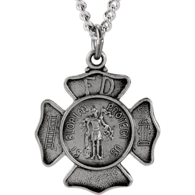 Sterling Silver 16.7x9 mm St. Florian Medal 18' Necklace