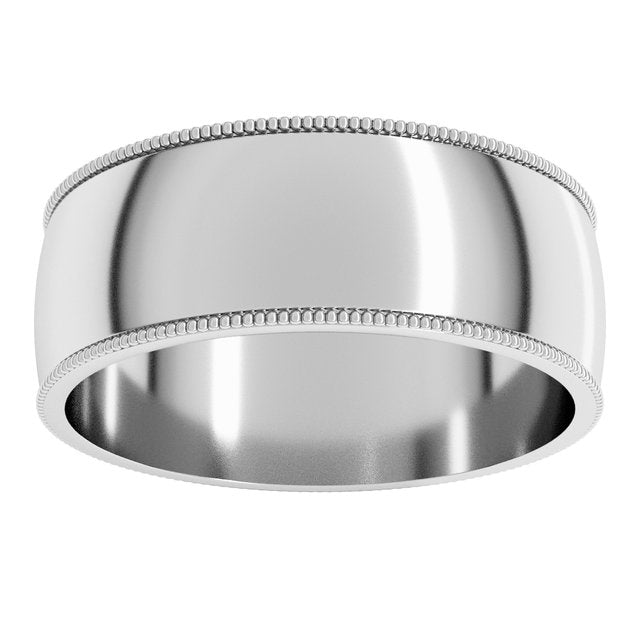 Sterling Silver 7 Mm Milgrain Half Round Light Band Size 8