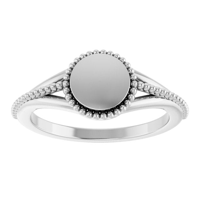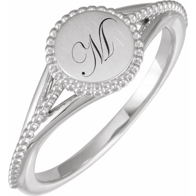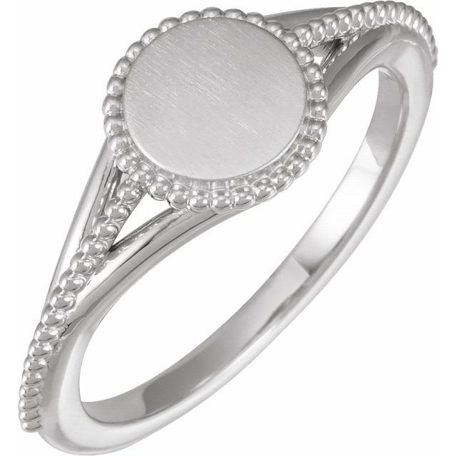 Sterling Silver 8.7 mm Engravable Beaded Signet Ring