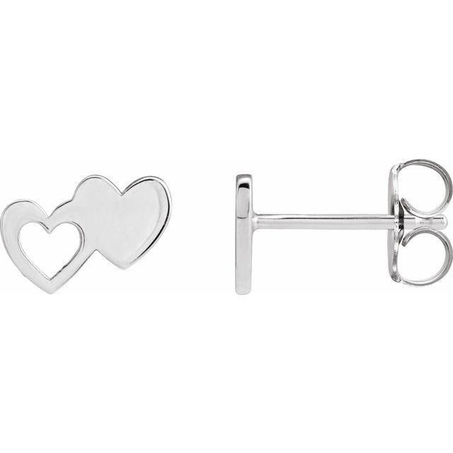 Sterling Silver Double Heart Stud Earrings
