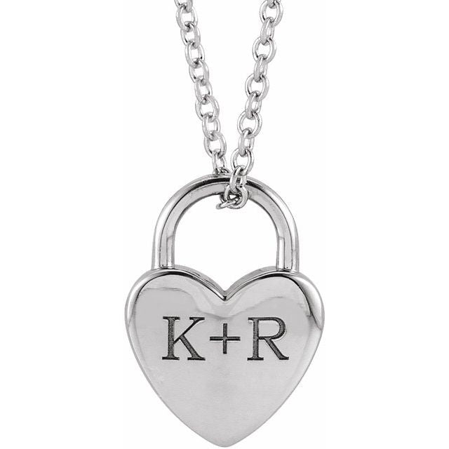 Sterling Silver Engravable Heart Lock 16-18' Necklace