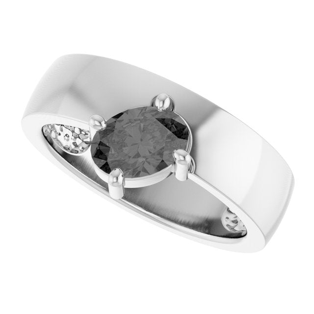 Sterling Silver Natural Gray Spinel Asymmetric Solitaire Ring