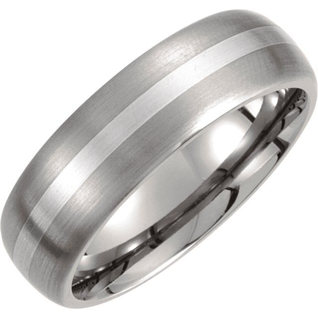 Titanium & Sterling Silver Inlay 7 mm Satin Finish Domed Band Size 8