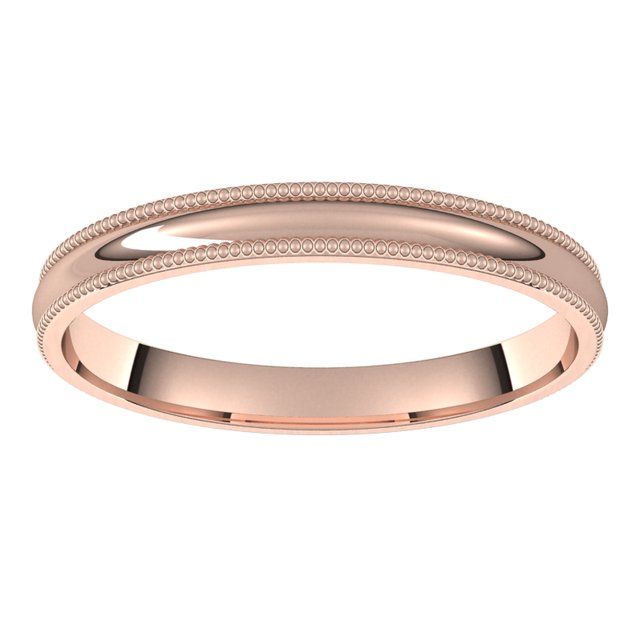 14K Rose 2.5 mm Milgrain Half Round Comfort Fit Band Size 8