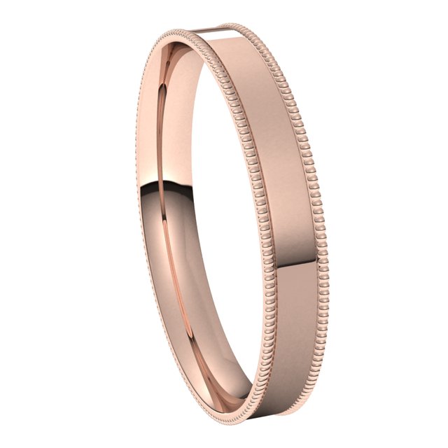 14K Rose 3 mm Milgrain Flat Comfort Fit Band Size 9