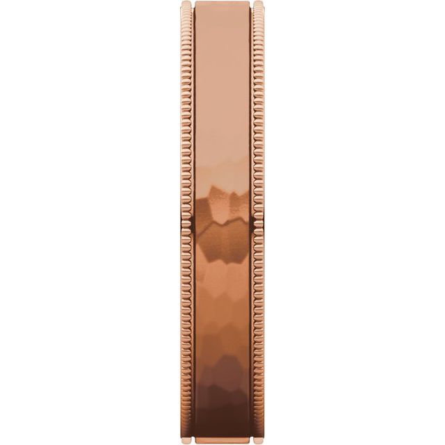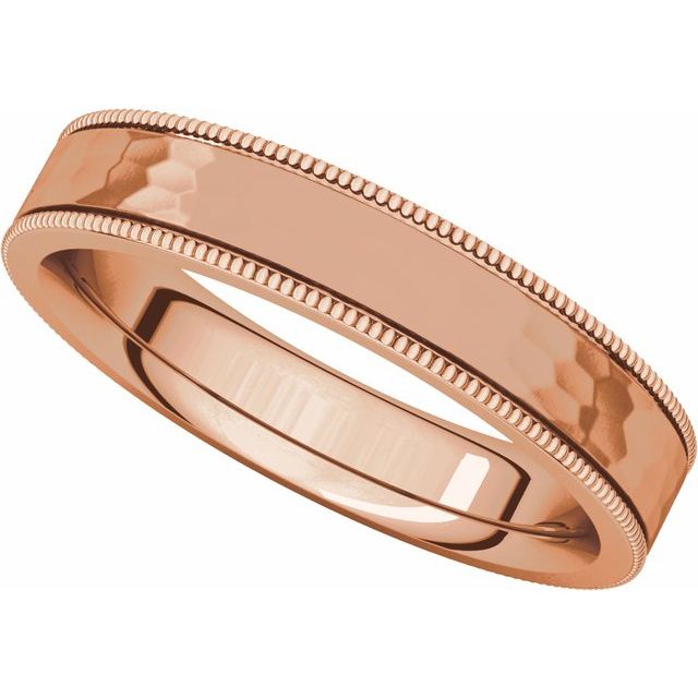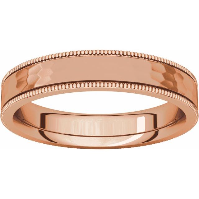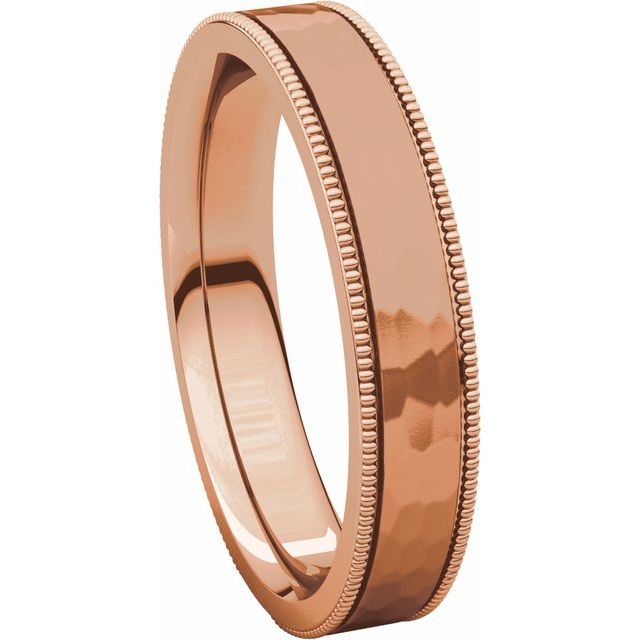 14K Rose 4 mm Flat Milgrain Band with Satin & Hammered Texture Size 9.5