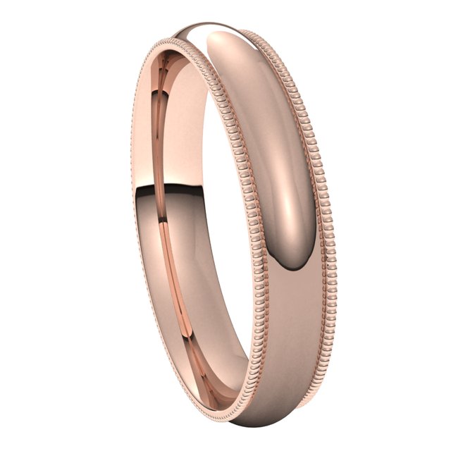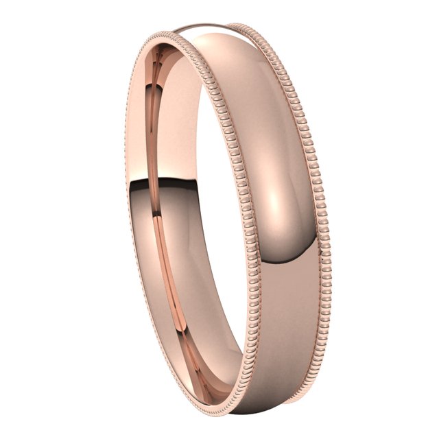 14K Rose 4 mm Milgrain Half Round Comfort Fit Light Band Size 5