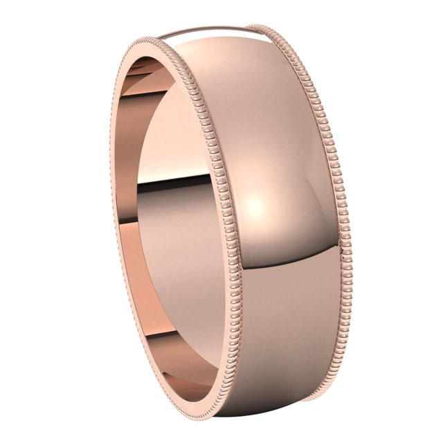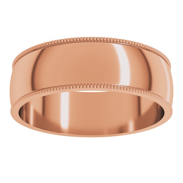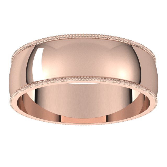 14K Rose 6 mm Milgrain Half Round Light Band Size 7