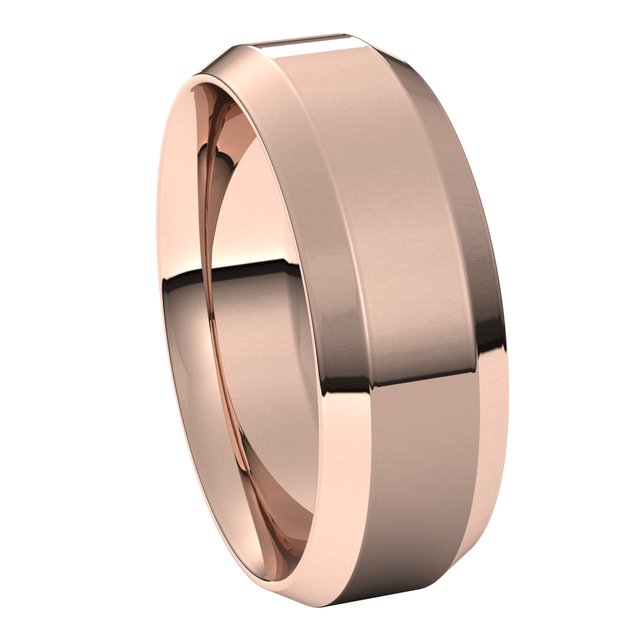 14K Rose 7 mm Beveled-Edge Comfort-Fit Band Size 11