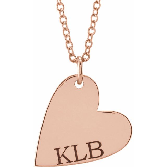 14K Rose Engravable Sideways Heart 16-18' Necklace