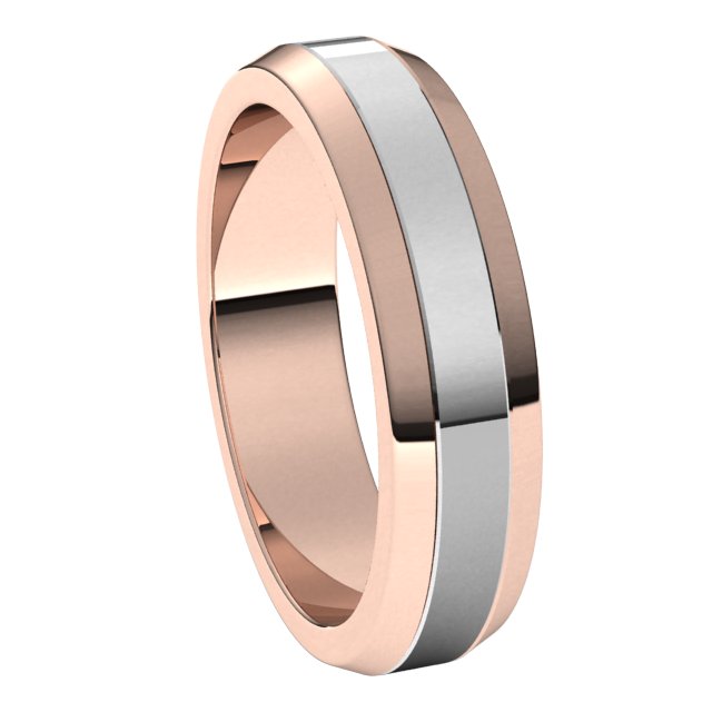 14K Rose/White 5 mm Beveled Edge Band Size 8.5