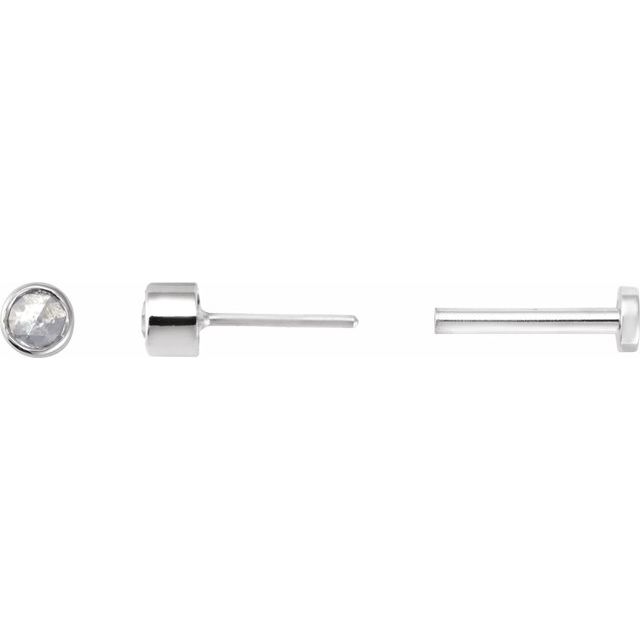 14K White .04 CT Rose-Cut Natural Diamond Press Fit Back Stud Earring
