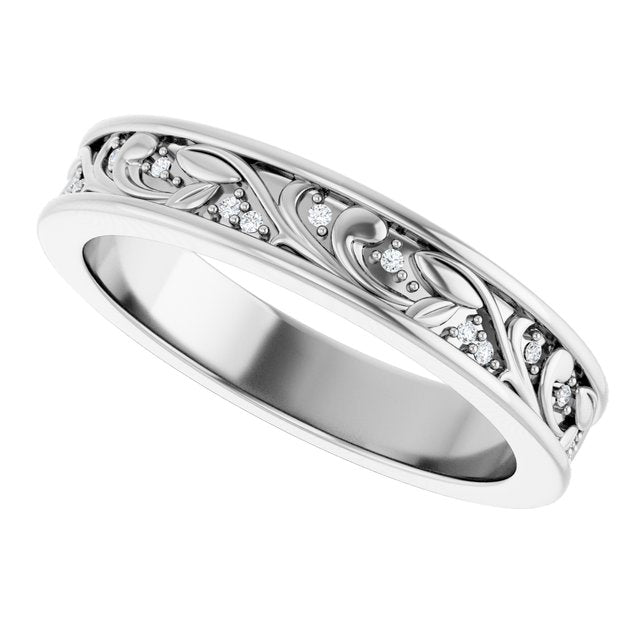 14K White .06 CTW Natural Diamond Floral Band Size 7