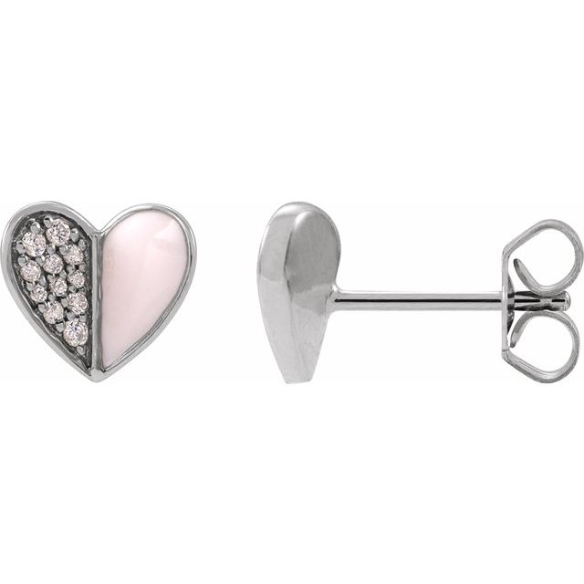 14K White 1/10 Natural Diamond & Pink Enamel Heart Earrings