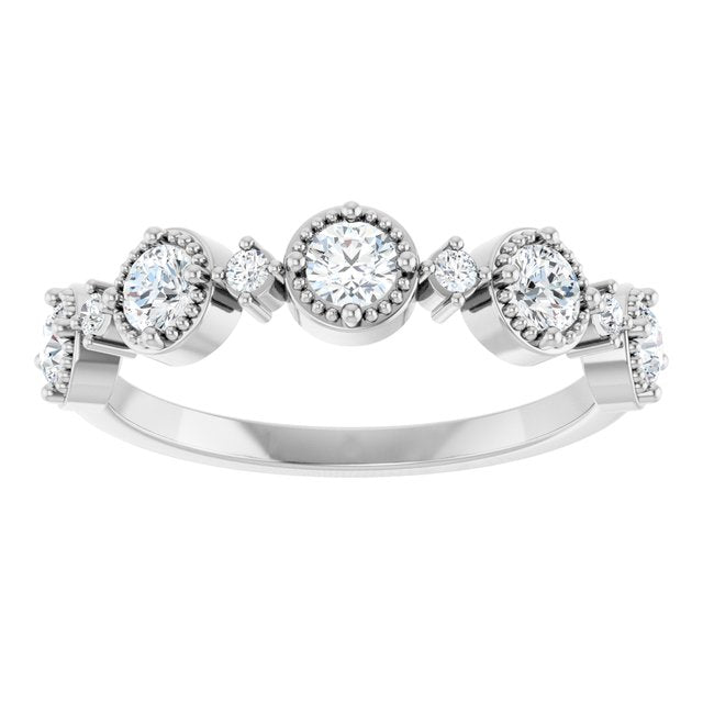 14K White 1/2 CTW Natural Diamond Beaded Halo Anniversary Band