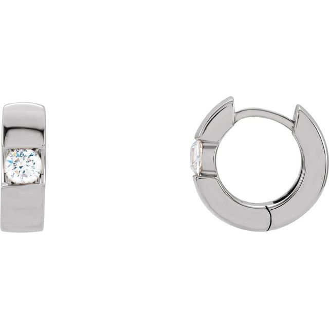 14K White 1/2 CTW Natural Diamond Hinged Hoop Earrings