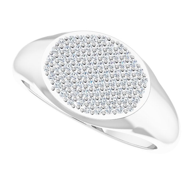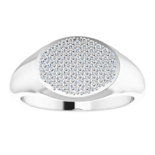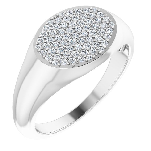 14k White 1/3 Ctw Natural Diamond Signet Ring