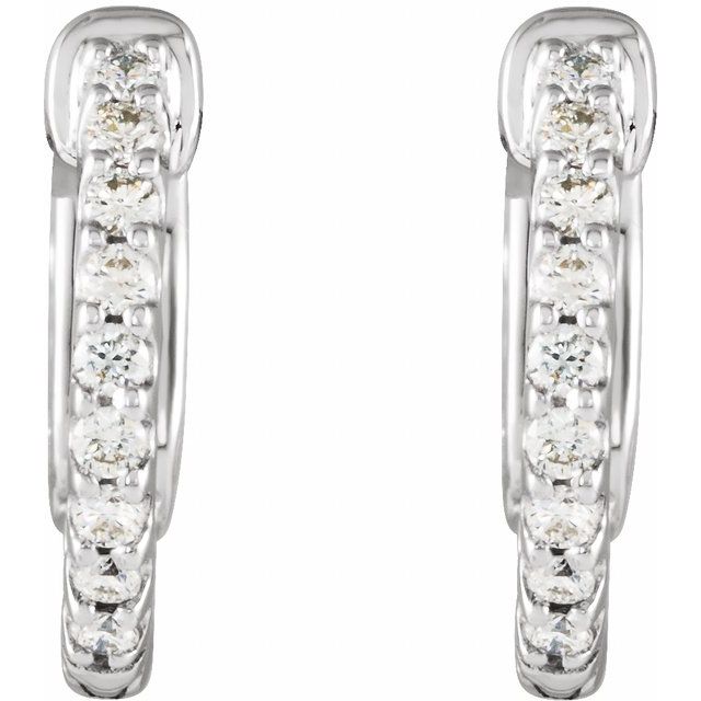 14K White 1/4 CTW Natural Diamond Inside-Outside 14.5 mm Hinged Hoop Earrings