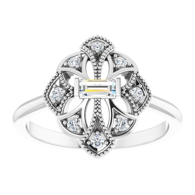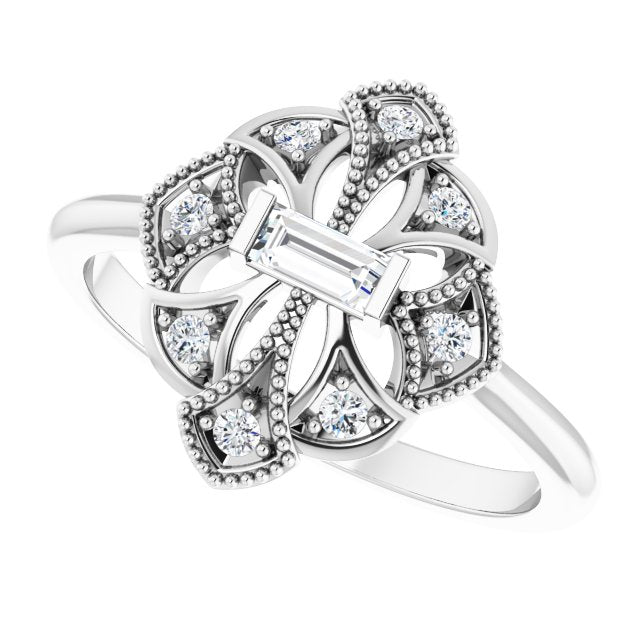 14K White 1/5 CTW Natural Diamond Vintage-Inspired Ring