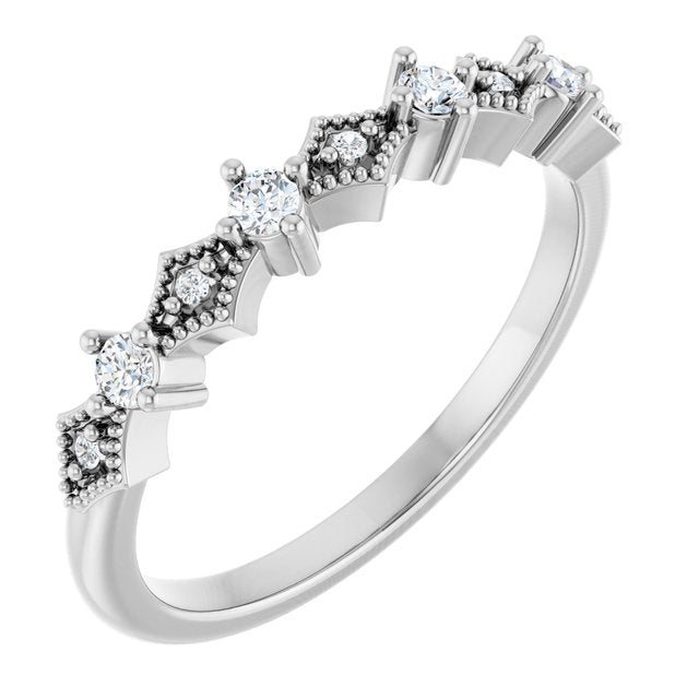 14K White 1/8 CTW Natural Diamond Milgrain Anniversary Band