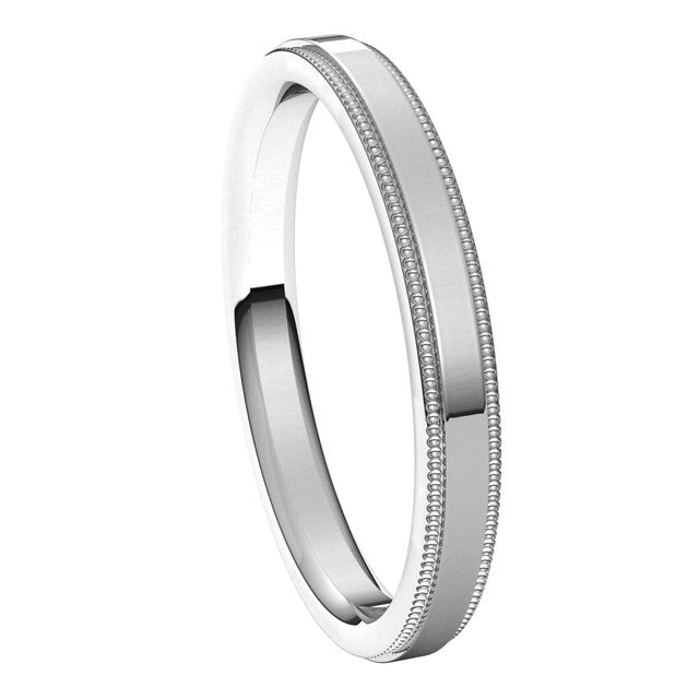 14K White 2.5 mm Milgrain Flat Comfort Fit Edge Band Size 6.5
