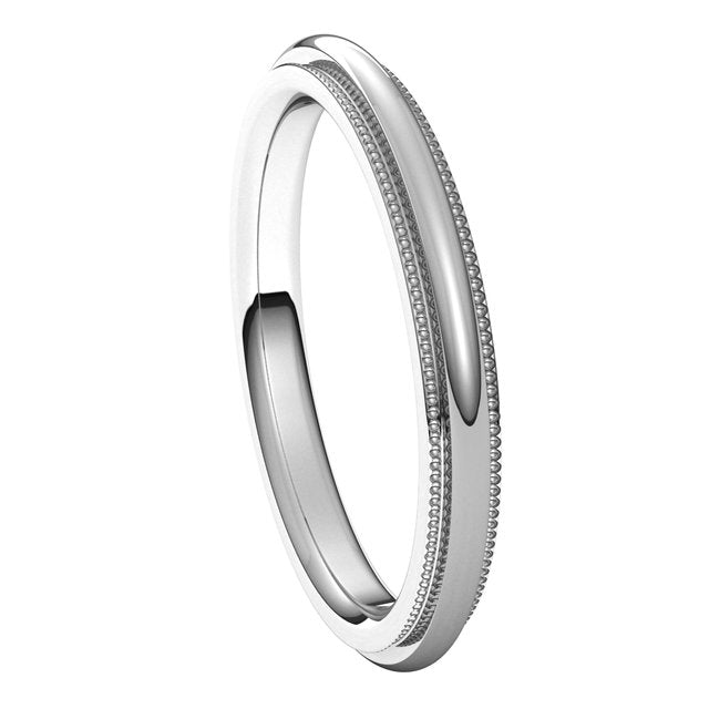 14K White 2.5 mm Milgrain Half Round Comfort Fit Edge Band Size 6.5