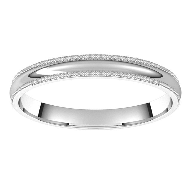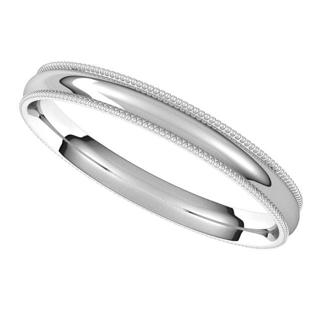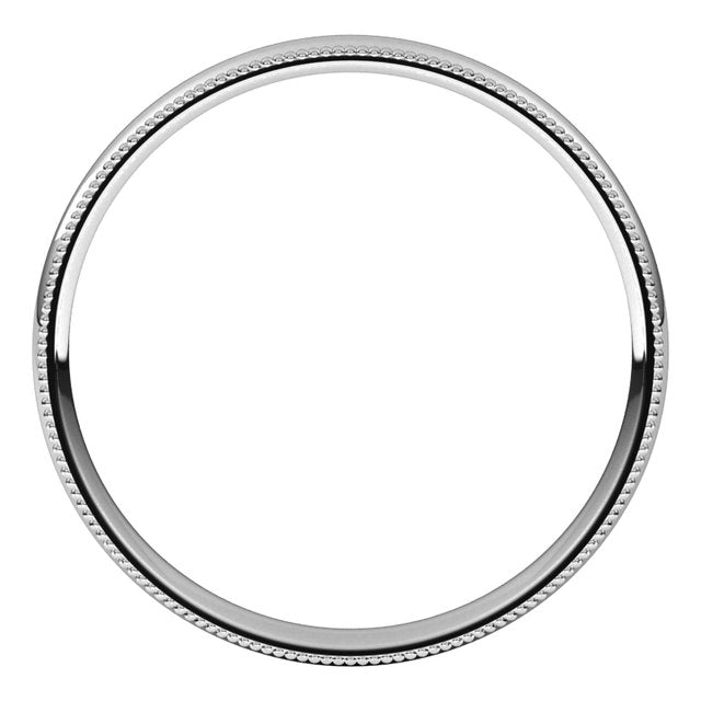 14K White 2.5 mm Milgrain Half Round Comfort Fit Light Band Size 7