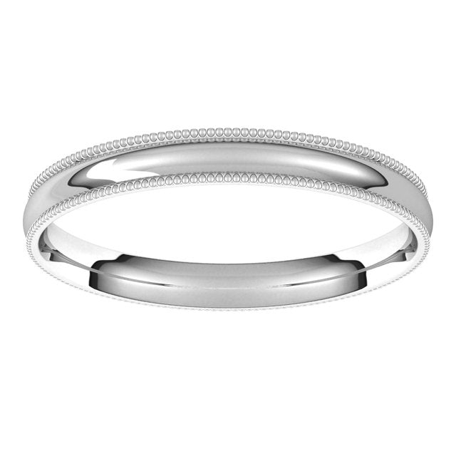 14K White 2.5 mm Milgrain Half Round Comfort Fit Light Band Size 9.5