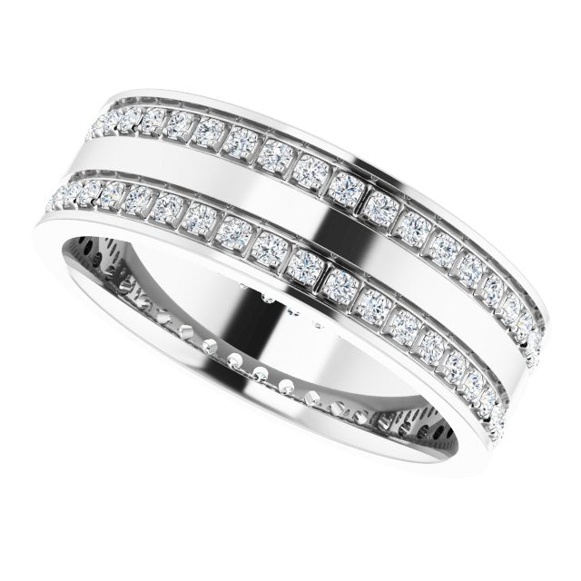 14K White 3/4 CTW Lab-Grown Diamond Double Row Accented Band Size 10.5