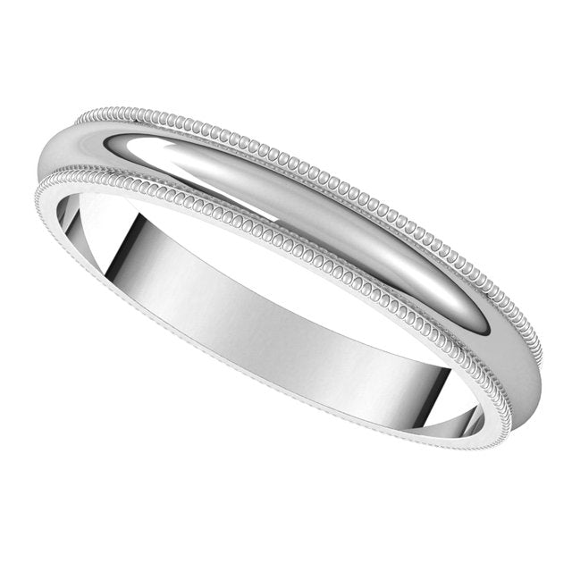 14K White 3 mm Milgrain Half Round Band Size 7