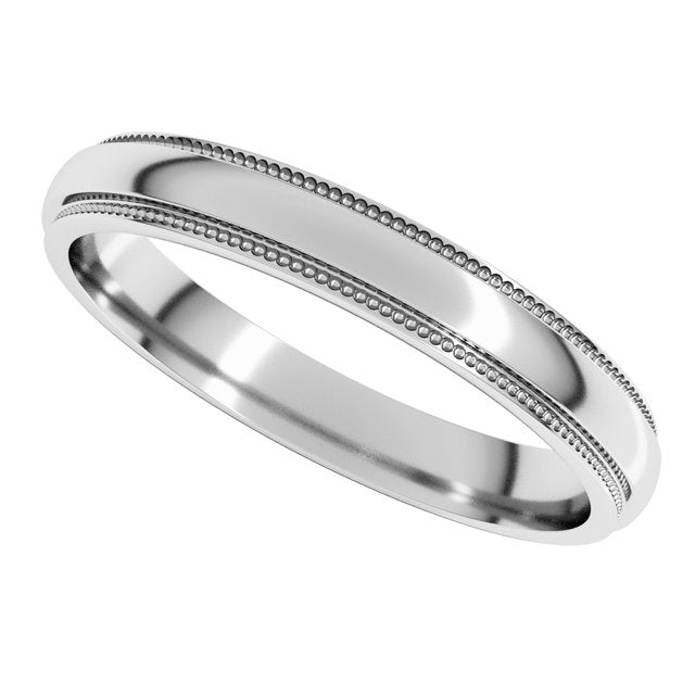 14K White 3 mm Milgrain Half Round Edge Band Size 5.5