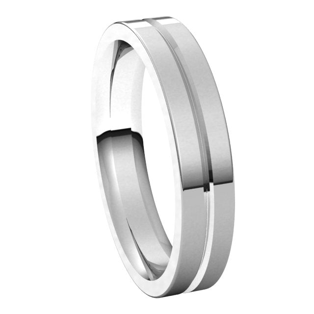 14K White 4 mm Grooved Flat Comfort Fit Band Size 7