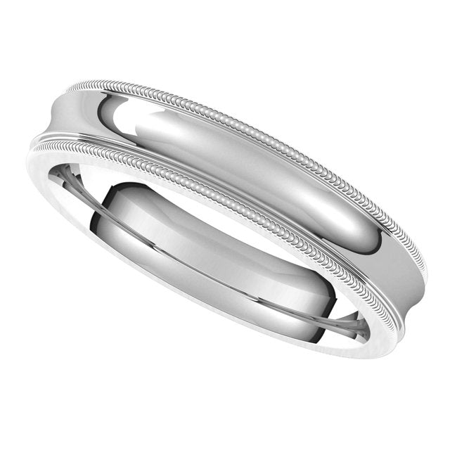 14k White 4 Mm Milgrain Concave Comfort-fit Band Size 5
