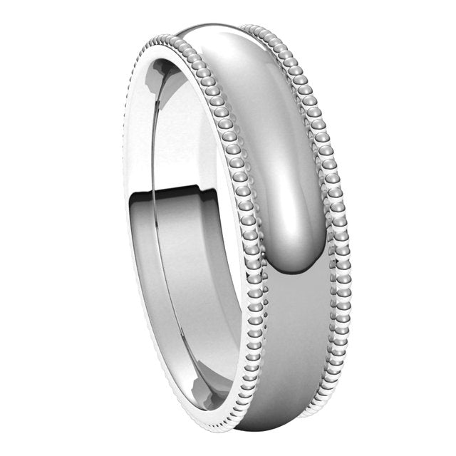 14K White 5 mm Beaded Comfort-Fit Band Size 8