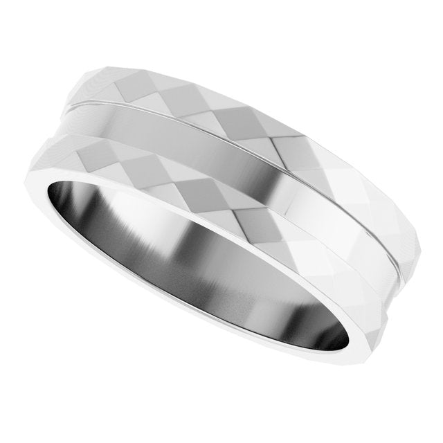 14K White 6 mm Faceted Edge Band Size 10