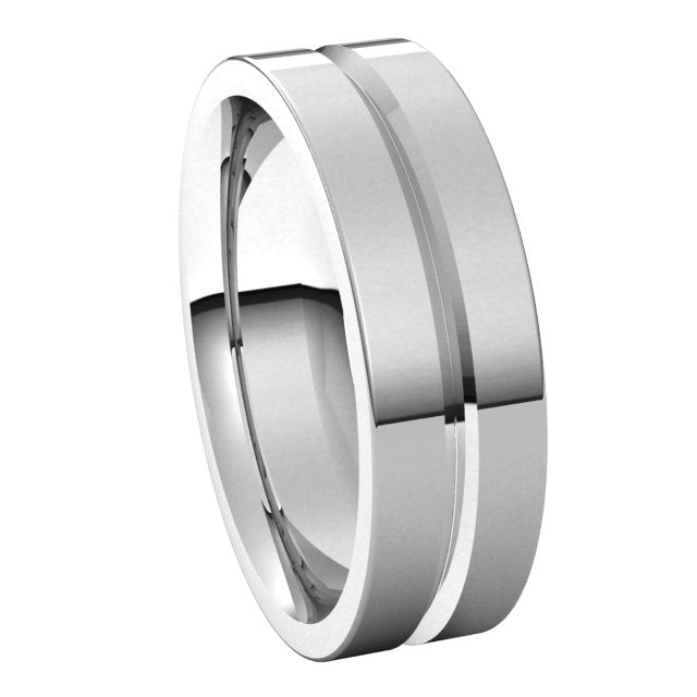 14K White 6 mm Grooved Flat Comfort Fit Band Size 10