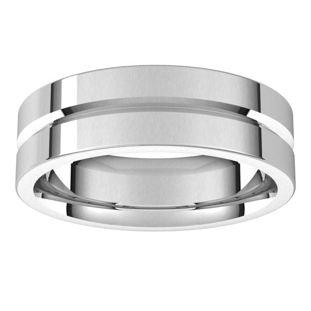 14K White 6 mm Grooved Flat Comfort Fit Band Size 7.5