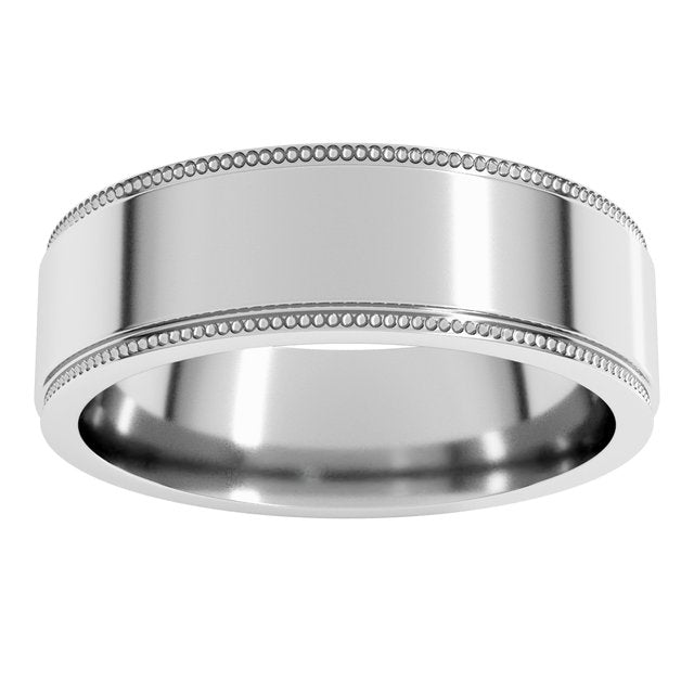 14K White 6 mm Milgrain Flat with Edge Band Size 8.5