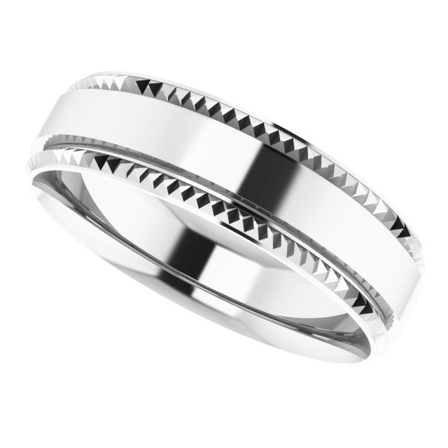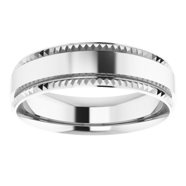 14K White 6 mm Textured Edge Band Size 10