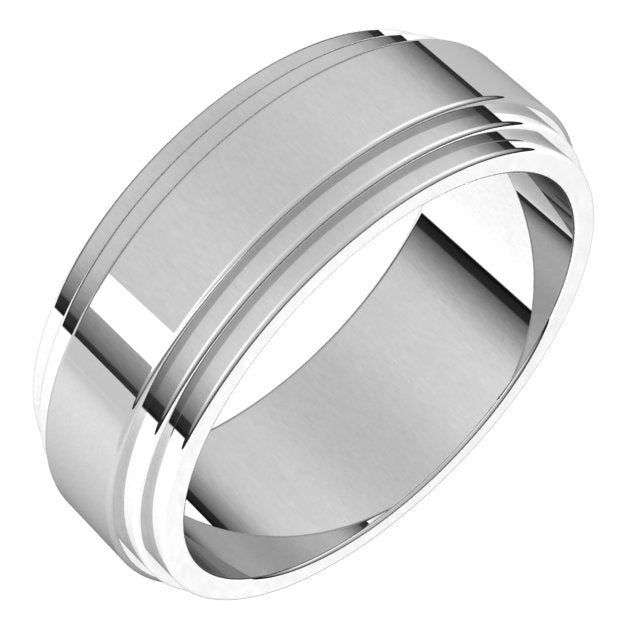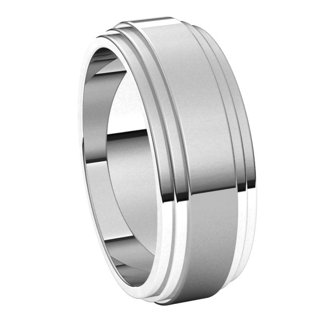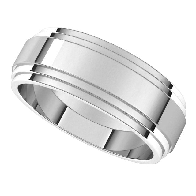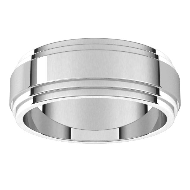 14K White 7 mm Flat Double Stepped Edge Band Size 14