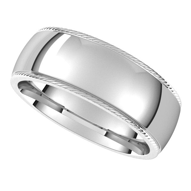 14K White 7 mm Rope Half Round Comfort Fit Band Size 10