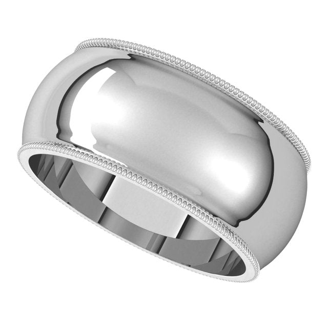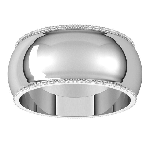 14K White 9 mm Milgrain Half Round Band Size 13.5