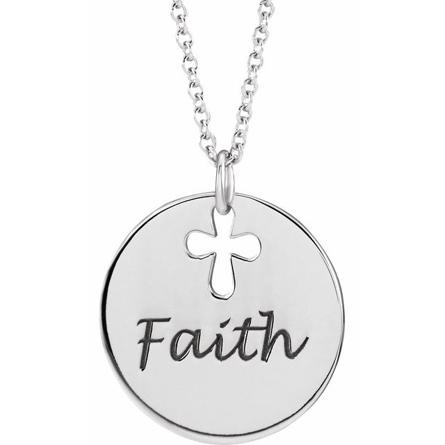 14K White Engravable Pierced Cross Disc 16-18' Necklace