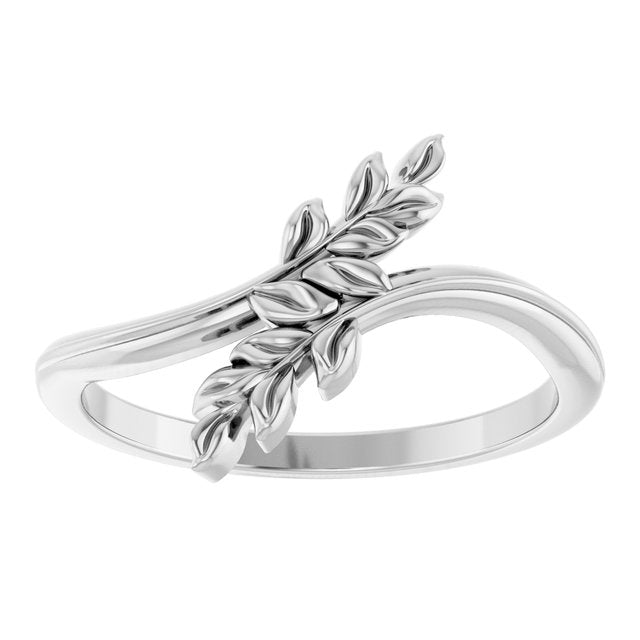 14K White Leaf Bypass Ring