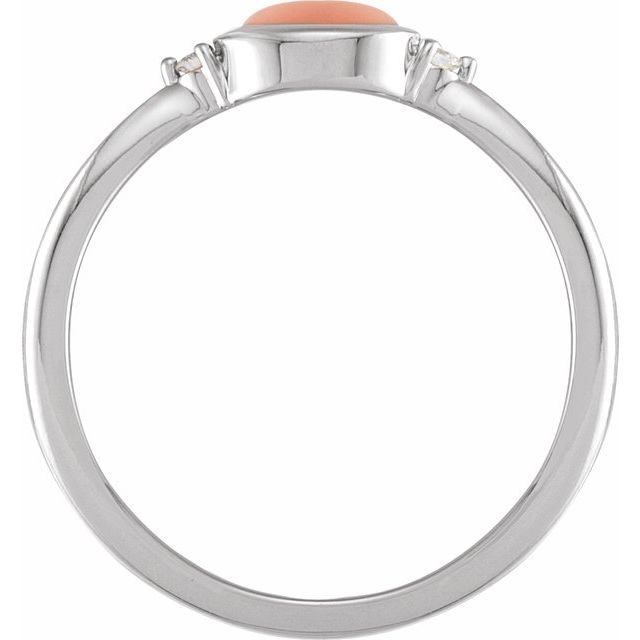 14K White Natural Pink Coral & .03 CTW Natural Diamond Ring