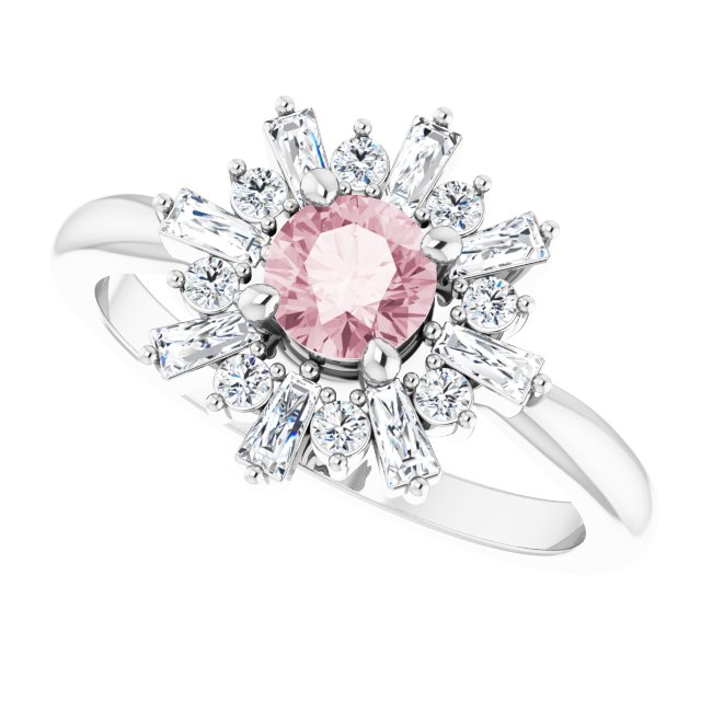 14K White Natural Pink Morganite & 3/8 CTW Natural Diamond Ring