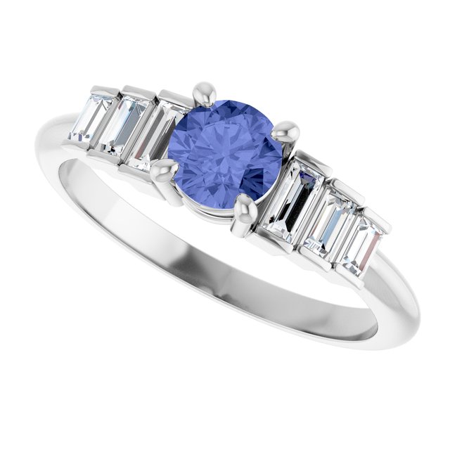 14K White Natural Tanzanite & 1/3 CTW Natural Diamond Ring