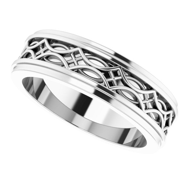 14K White Patterned Band Size 8.5
