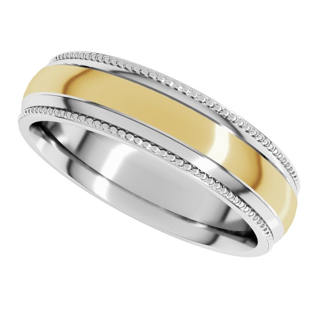 14K White/Yellow 6 mm Half Round Milgrain Comfort-Fit Band